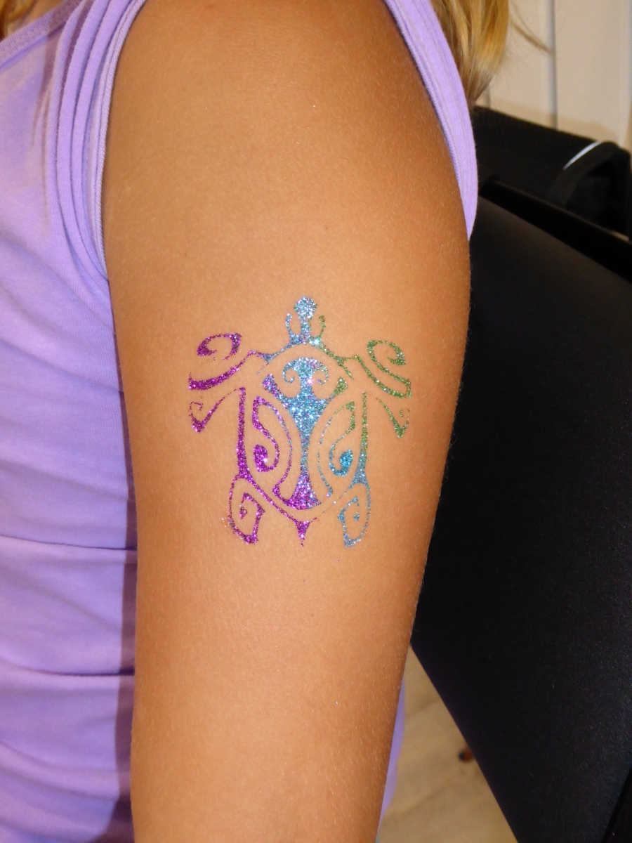 - des tatouages éphémères (tenue 2 à 5 jours) pailletés et/ou fluorescents sous lumière noire