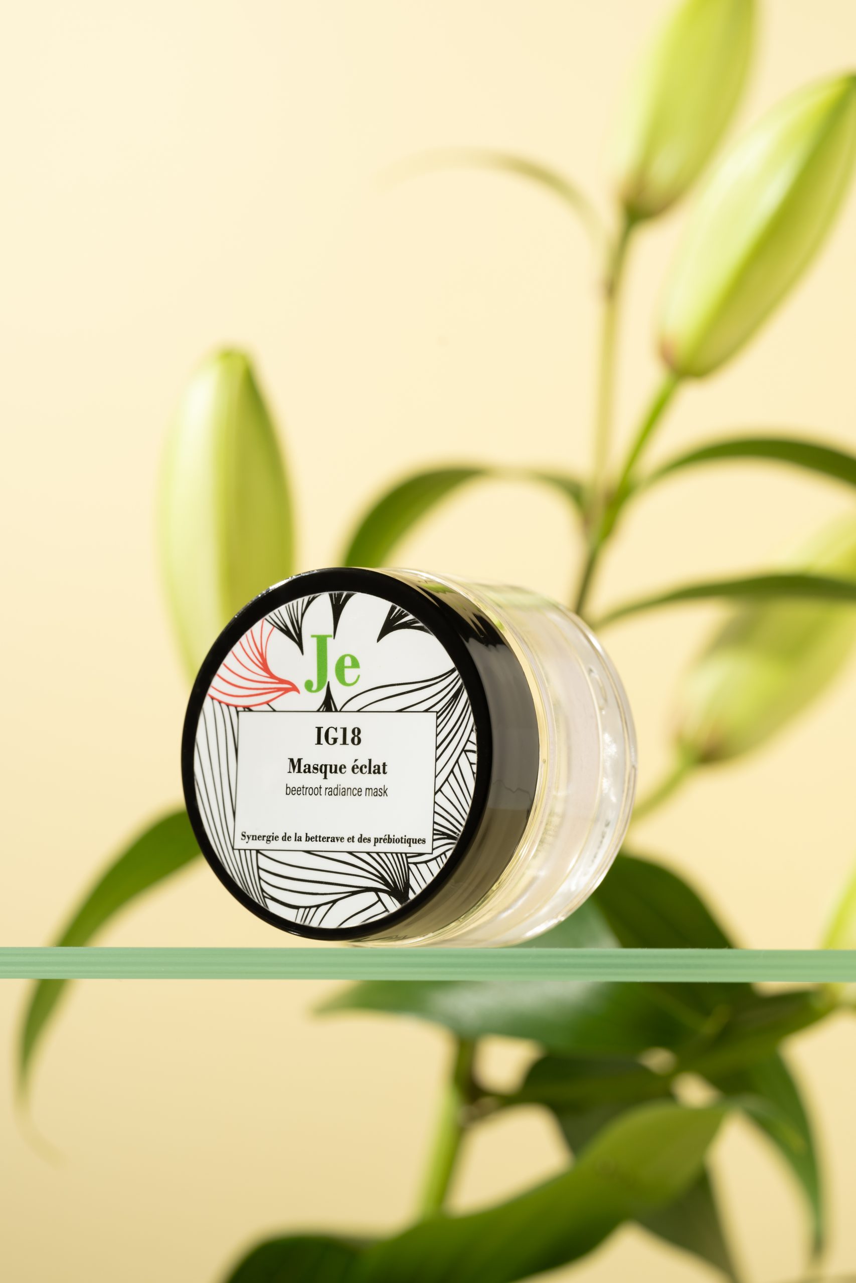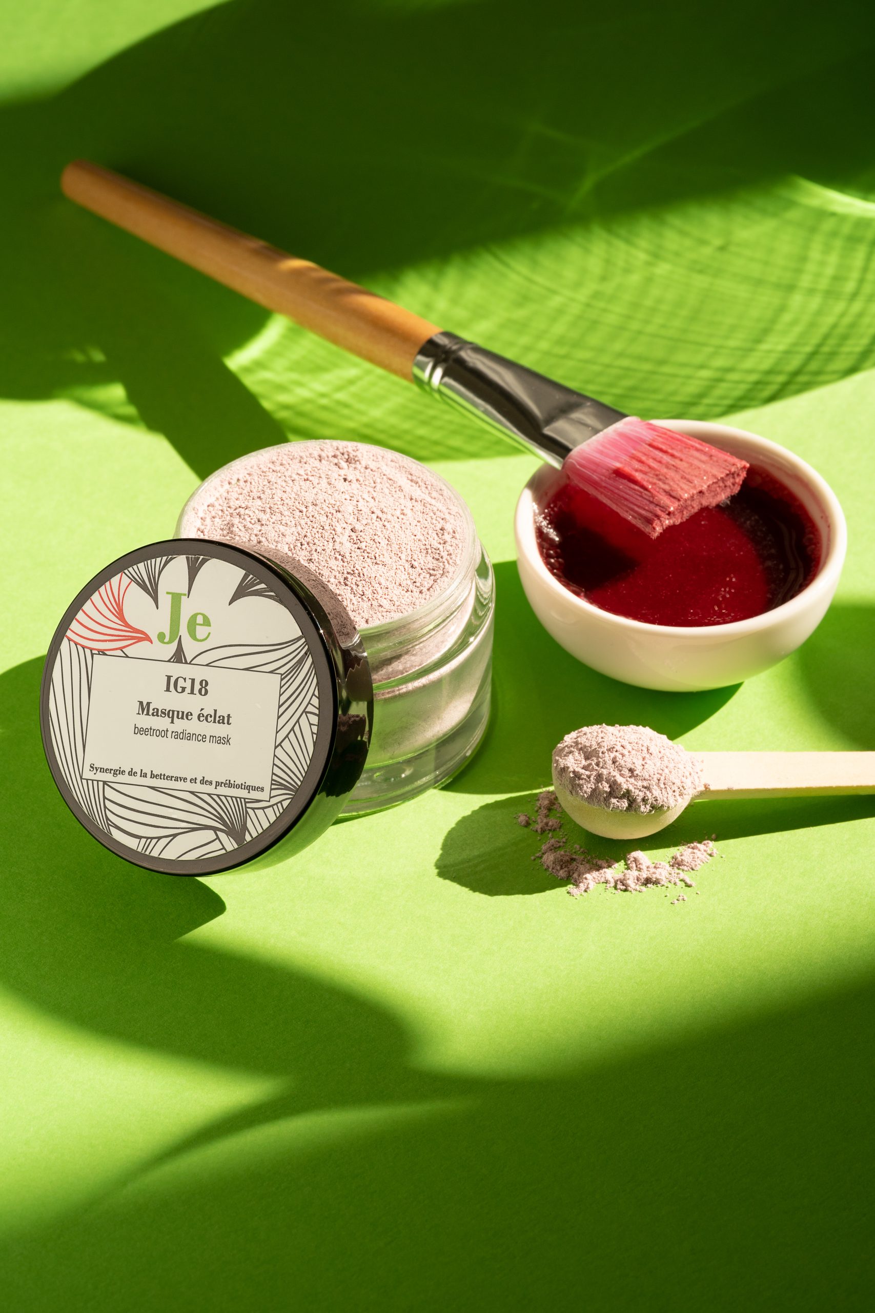 Masque IG18 – Masque rose en poudre à la betterave et aux prébiotiques pour un effet bonne mine.