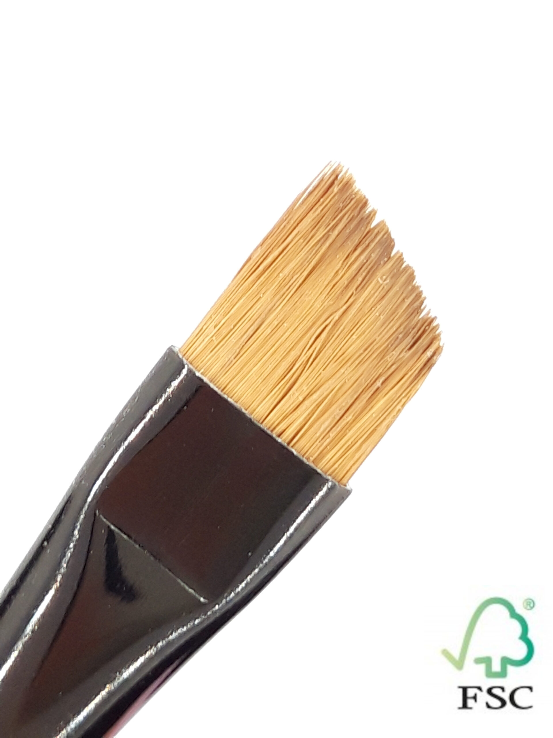 De forme plate à la pointe biseauté, doux et ferme à la fois, il est apprécié pour appliquer des ombres sur le pourtour de l’œil.